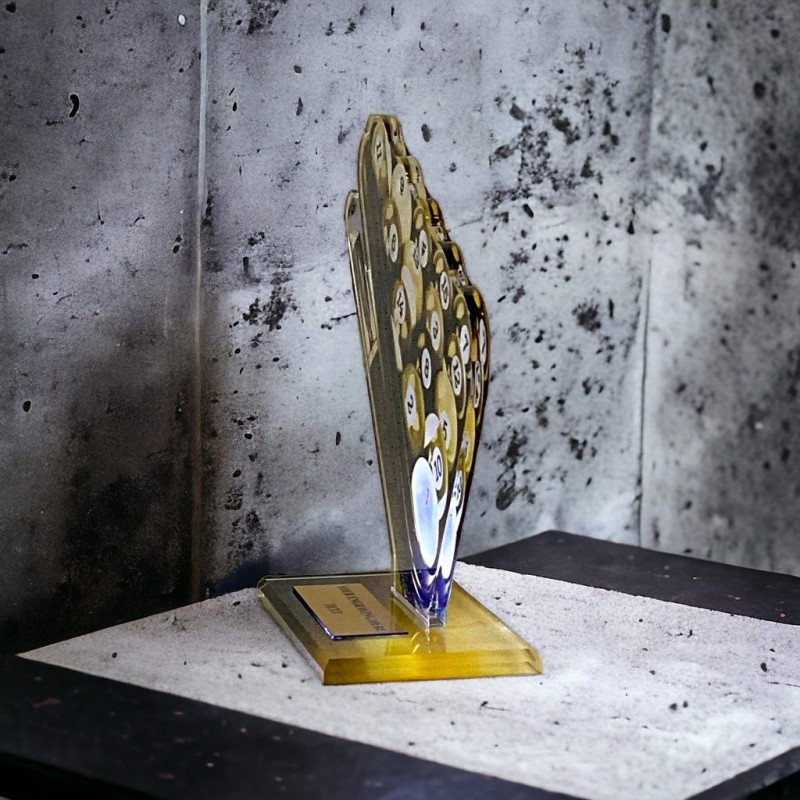 Akrylátová trofej o tloušťce 0,6cm s akrylátovým podstavcem o tloušťce 0,8cm. Možnost vložení štítku na podstavec. V ceně poháru není zahrnuta cena štítku. Šířka trofeje je pouze orientační, může se měnit v závislosti na motivu trofeje.