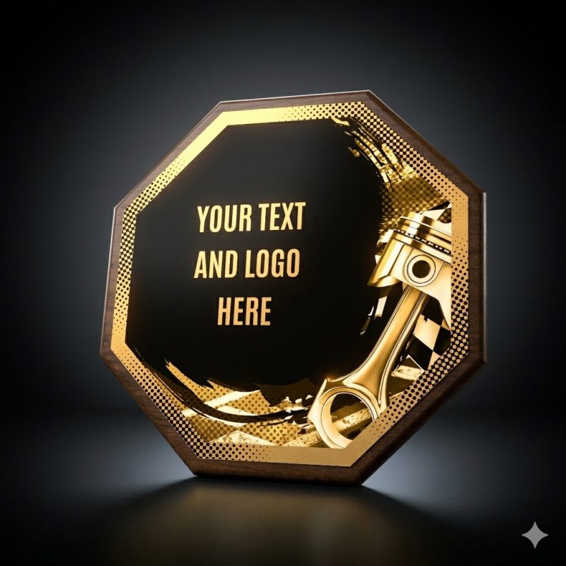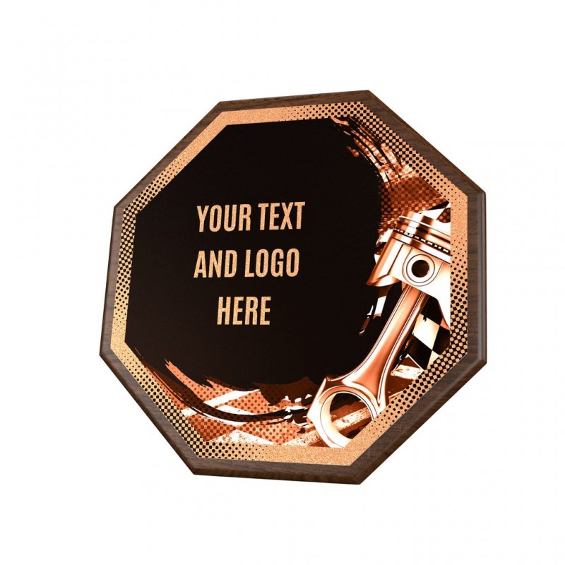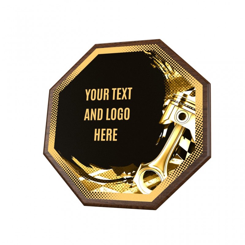 Stylové ocenění, které kombinuje dřevěnou plaketu o průměru 26 cm a tloušťce 1,5 cm s výrazným designovým středem o průměru 24 cm vyrobeného z kovu s UV tiskem a efektním lakem.