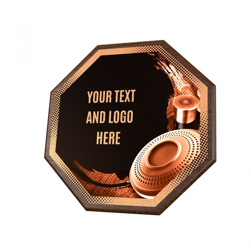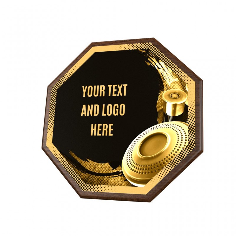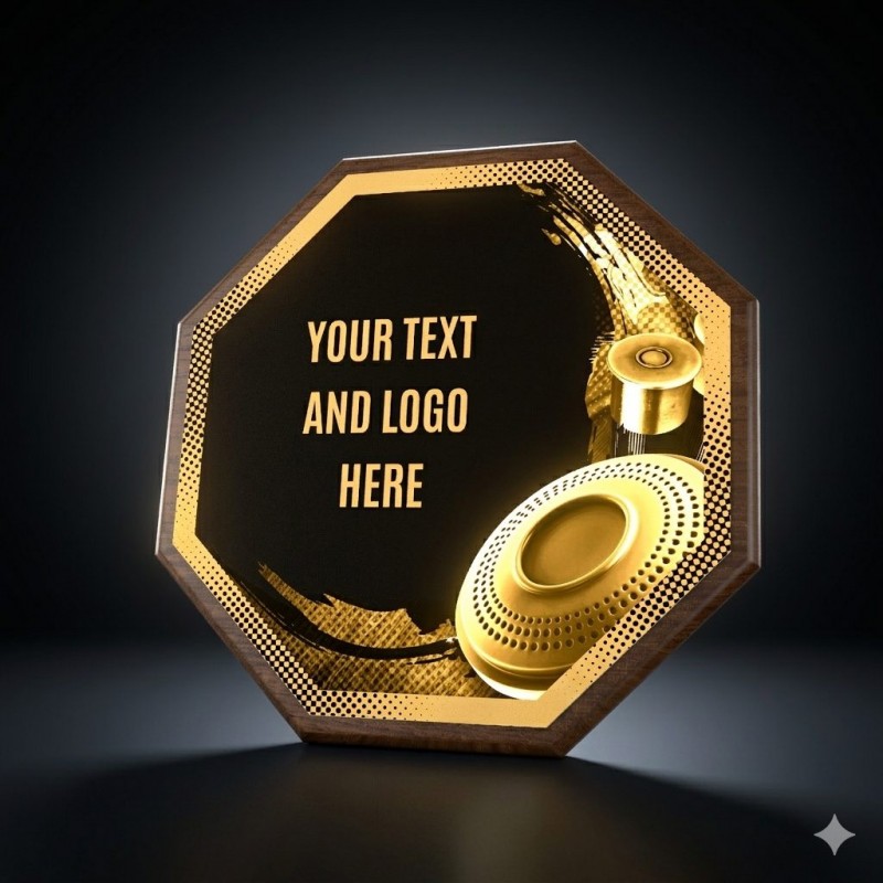 Stylové ocenění, které kombinuje dřevěnou plaketu o průměru 26 cm a tloušťce 1,5 cm s výrazným designovým středem o průměru 24 cm vyrobeného z kovu s UV tiskem a efektním lakem.