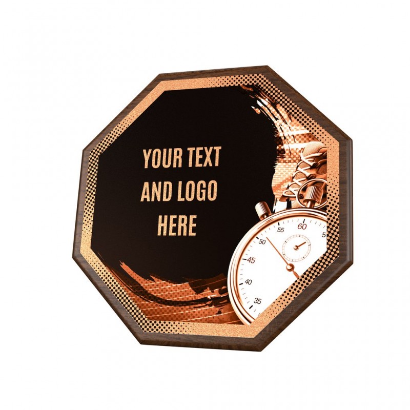 Stylové ocenění, které kombinuje dřevěnou plaketu o průměru 26 cm a tloušťce 1,5 cm s výrazným designovým středem o průměru 24 cm vyrobeného z kovu s UV tiskem a efektním lakem.