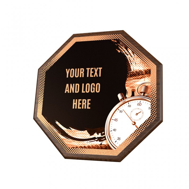 Stylové ocenění, které kombinuje dřevěnou plaketu o průměru 26 cm a tloušťce 1,5 cm s výrazným designovým středem o průměru 24 cm vyrobeného z kovu s UV tiskem a efektním lakem.