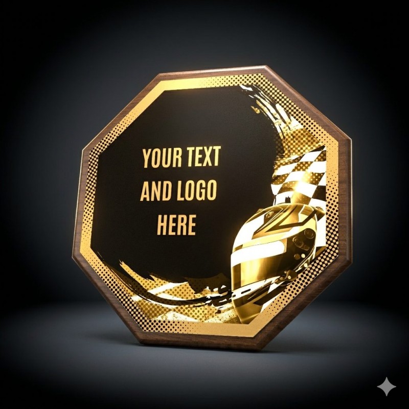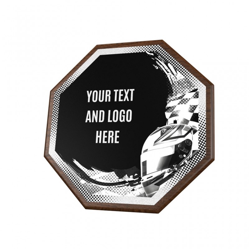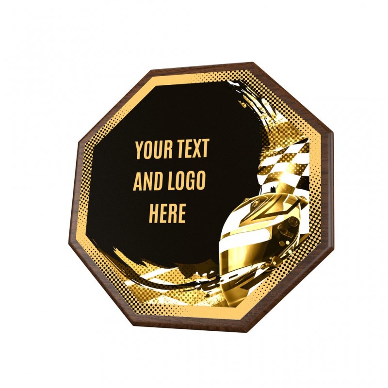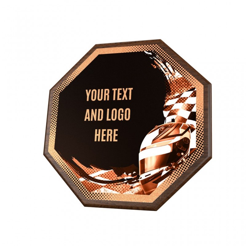 Stylové ocenění, které kombinuje dřevěnou plaketu o průměru 26 cm a tloušťce 1,5 cm s výrazným designovým středem o průměru 24 cm vyrobeného z kovu s UV tiskem a efektním lakem.
