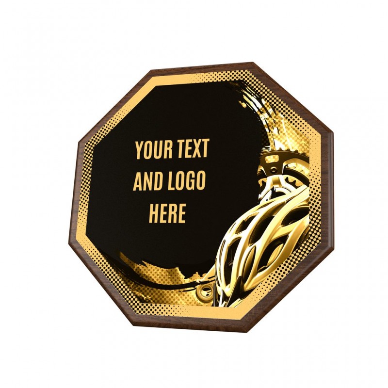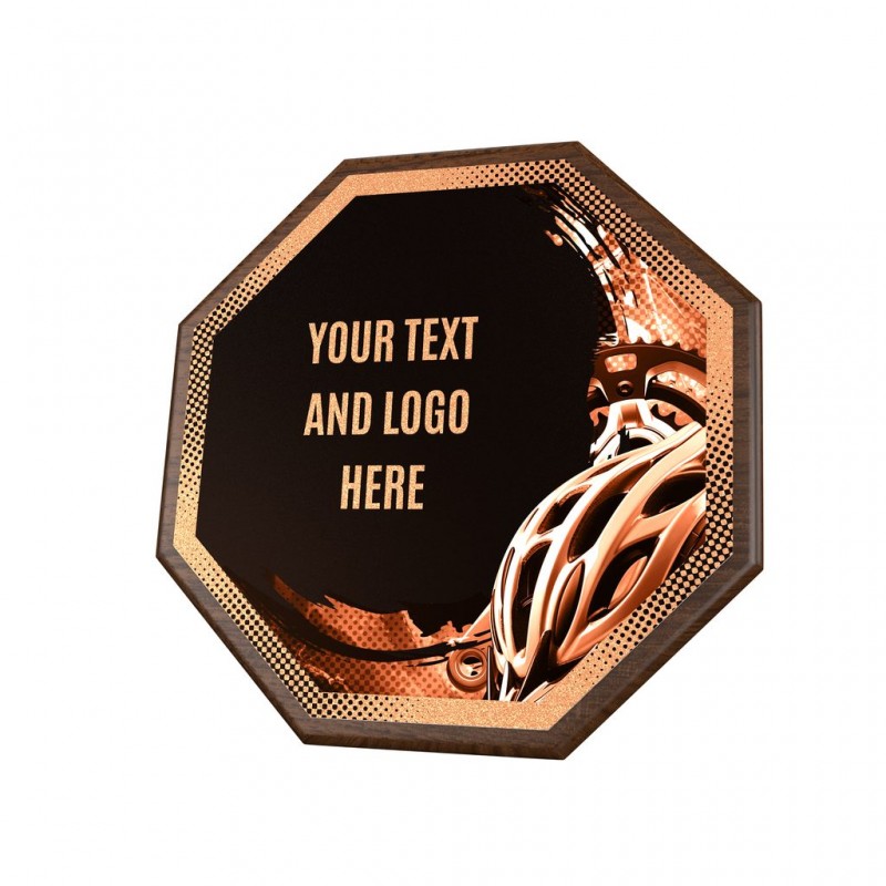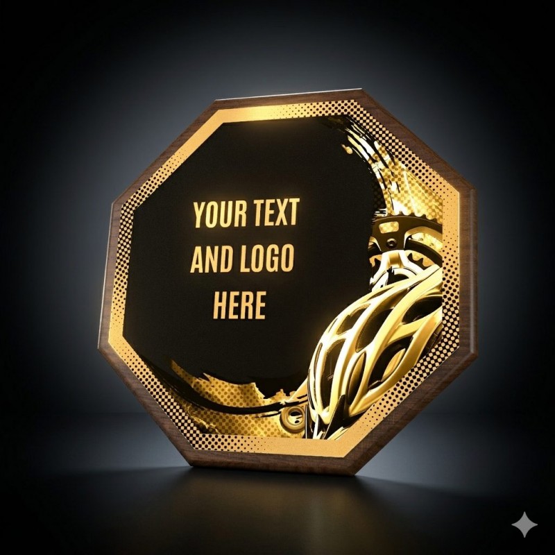 Stylové ocenění, které kombinuje dřevěnou plaketu o průměru 26 cm a tloušťce 1,5 cm s výrazným designovým středem o průměru 24 cm vyrobeného z kovu s UV tiskem a efektním lakem.