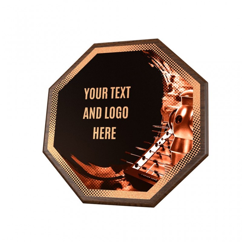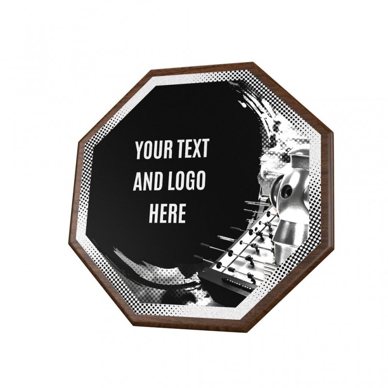 Stylové ocenění, které kombinuje dřevěnou plaketu o průměru 26 cm a tloušťce 1,5 cm s výrazným designovým středem o průměru 24 cm vyrobeného z kovu s UV tiskem a efektním lakem.