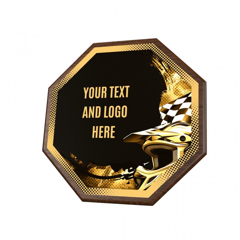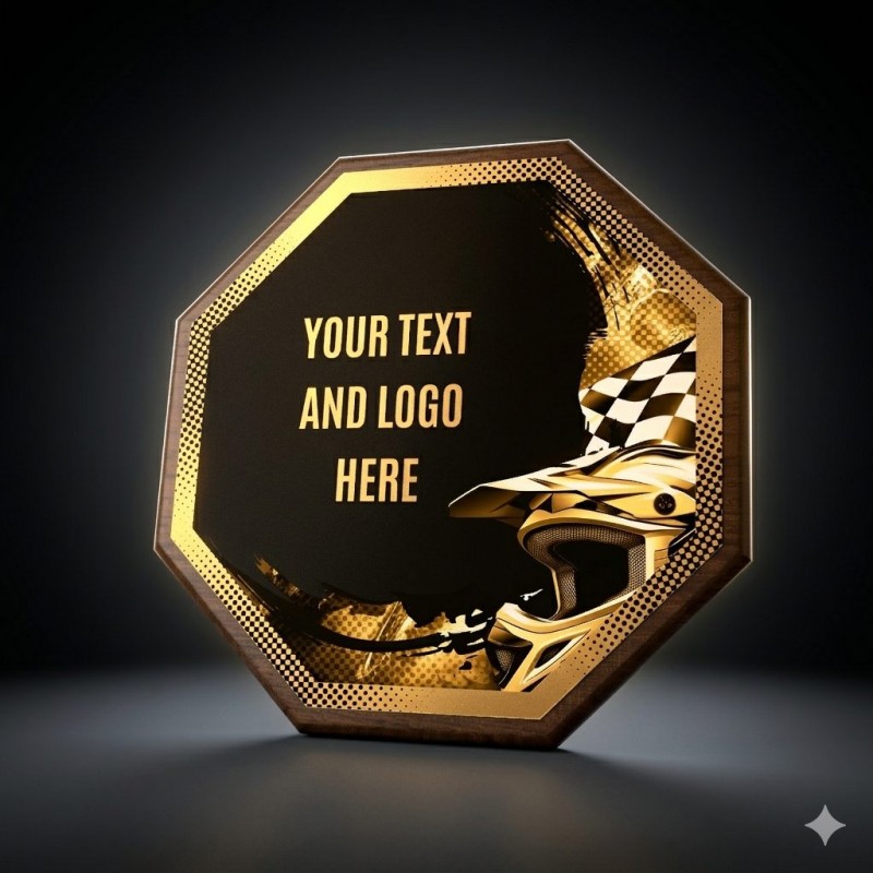 Stylové ocenění, které kombinuje dřevěnou plaketu o průměru 26 cm a tloušťce 1,5 cm s výrazným designovým středem o průměru 24 cm vyrobeného z kovu s UV tiskem a efektním lakem.