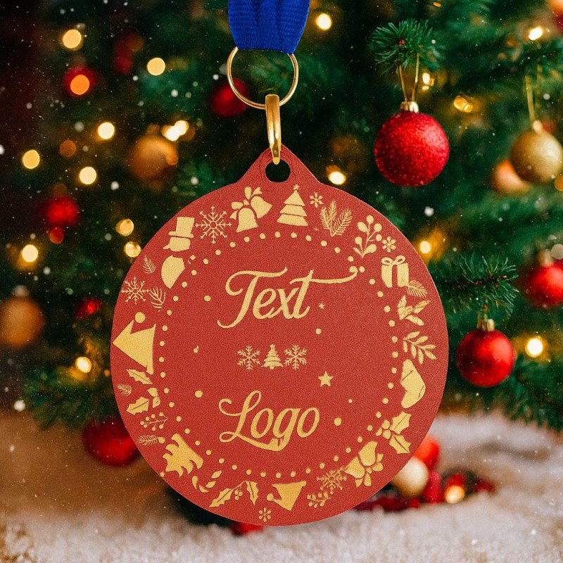 Kovová Vánoční medaile o tloušťce 0,15 mm s možností vložení vlastního textu i loga na přední i zadní stranu. Medaile se vyrábí ve 3 velikostech – 5, 6 a 7 cm. Stuha je ke každé medaili zdarma.