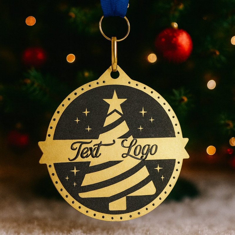 Kovová Vánoční medaile o tloušťce 0,15 mm s možností vložení vlastního textu i loga na přední i zadní stranu. Medaile se vyrábí ve 3 velikostech – 5, 6 a 7 cm. Stuha je ke každé medaili zdarma.