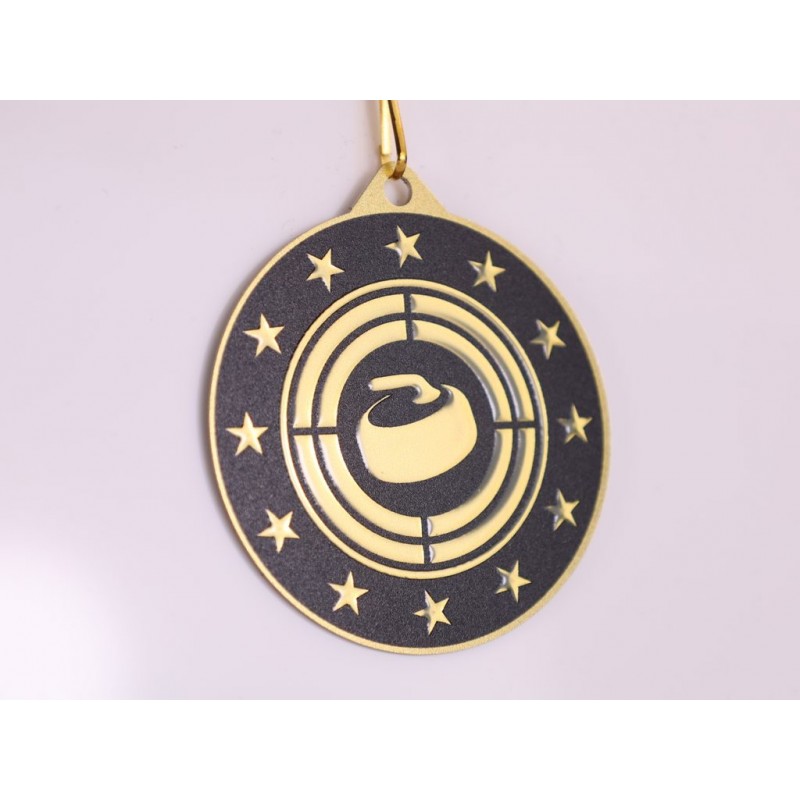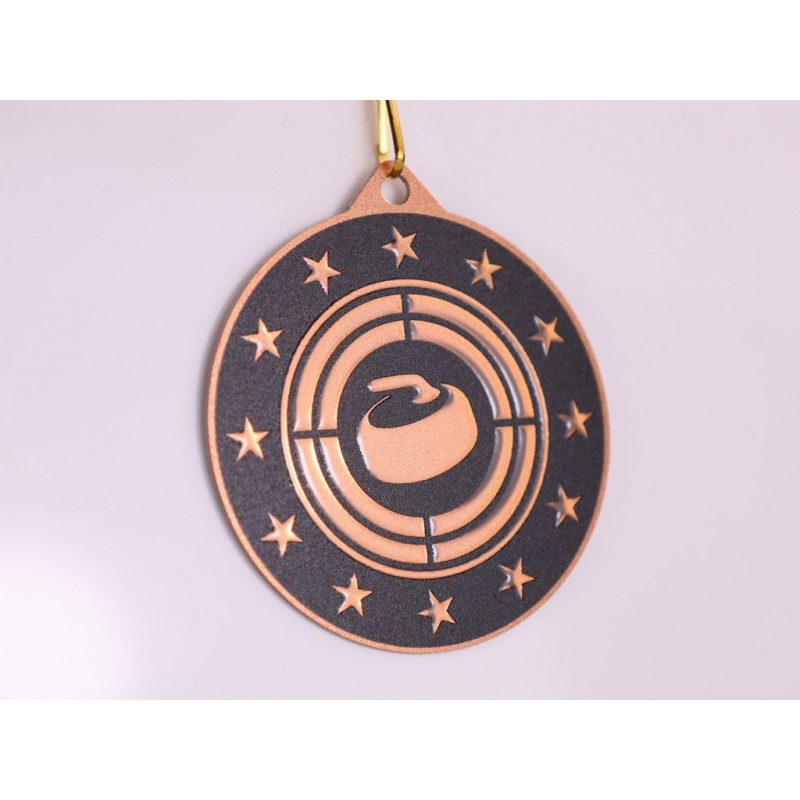 Medaile z kvalitního kovu s lesklým povrchem a tištěným sportovním motivem. Dostupná ve zlaté, stříbrné a bronzové barvě. Průměr 6 cm, tloušťka 0,15mm.