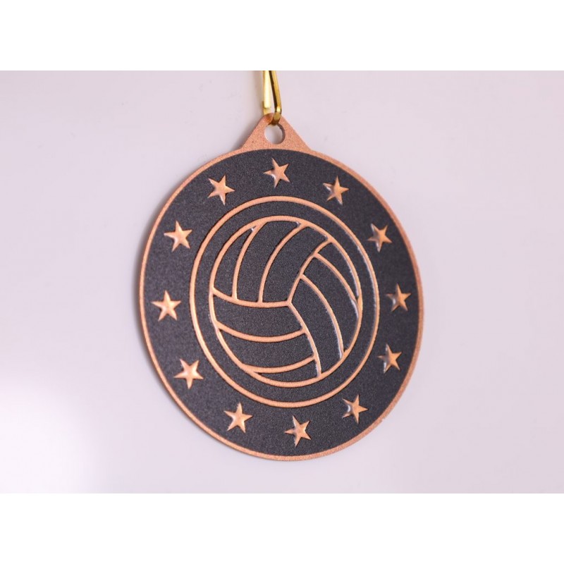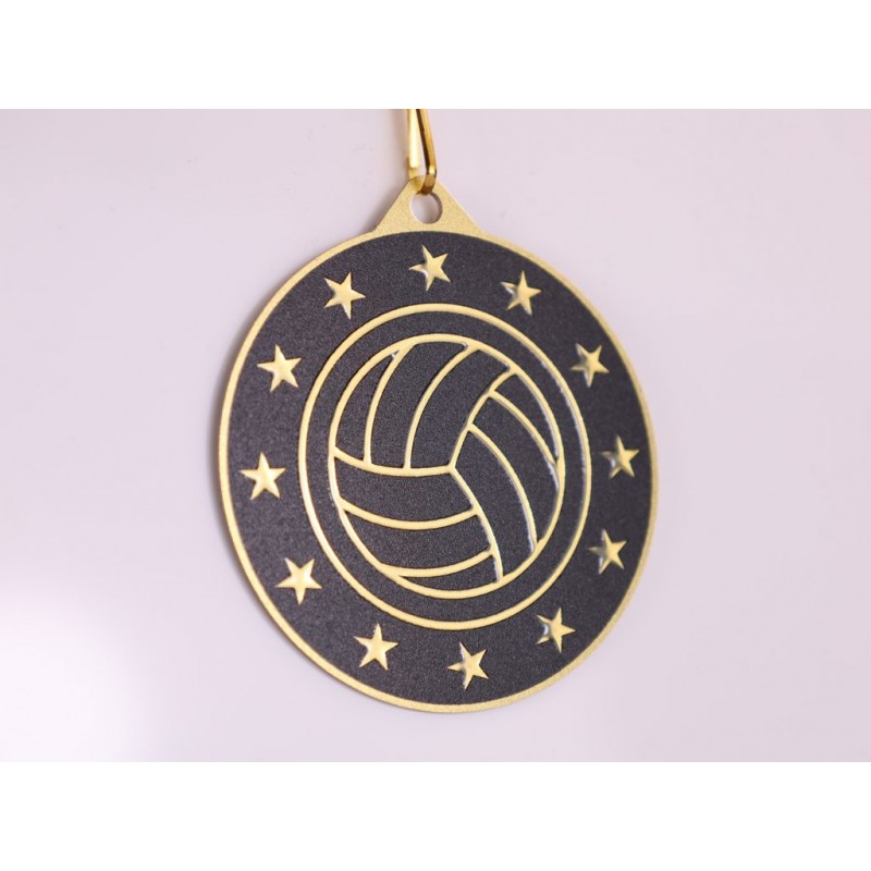 Medaile z kvalitního kovu s lesklým povrchem a tištěným sportovním motivem. Dostupná ve zlaté, stříbrné a bronzové barvě. Průměr 6 cm, tloušťka 0,15mm.