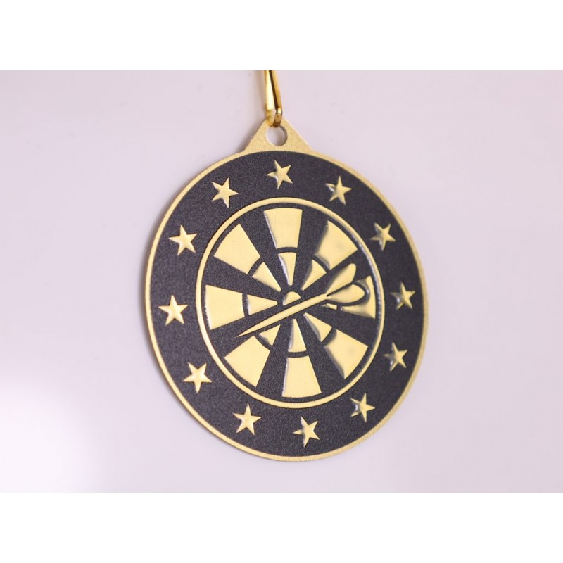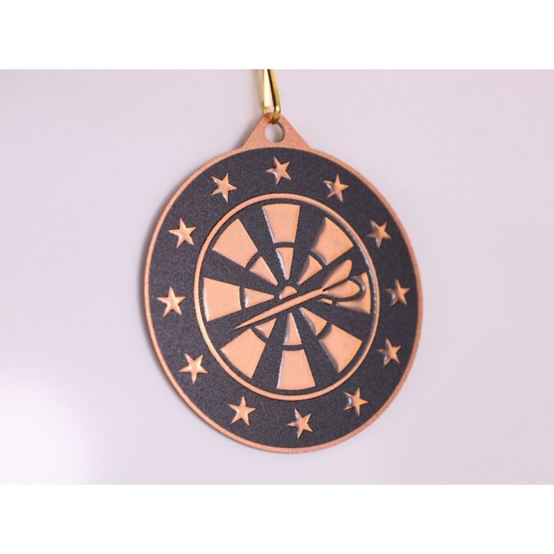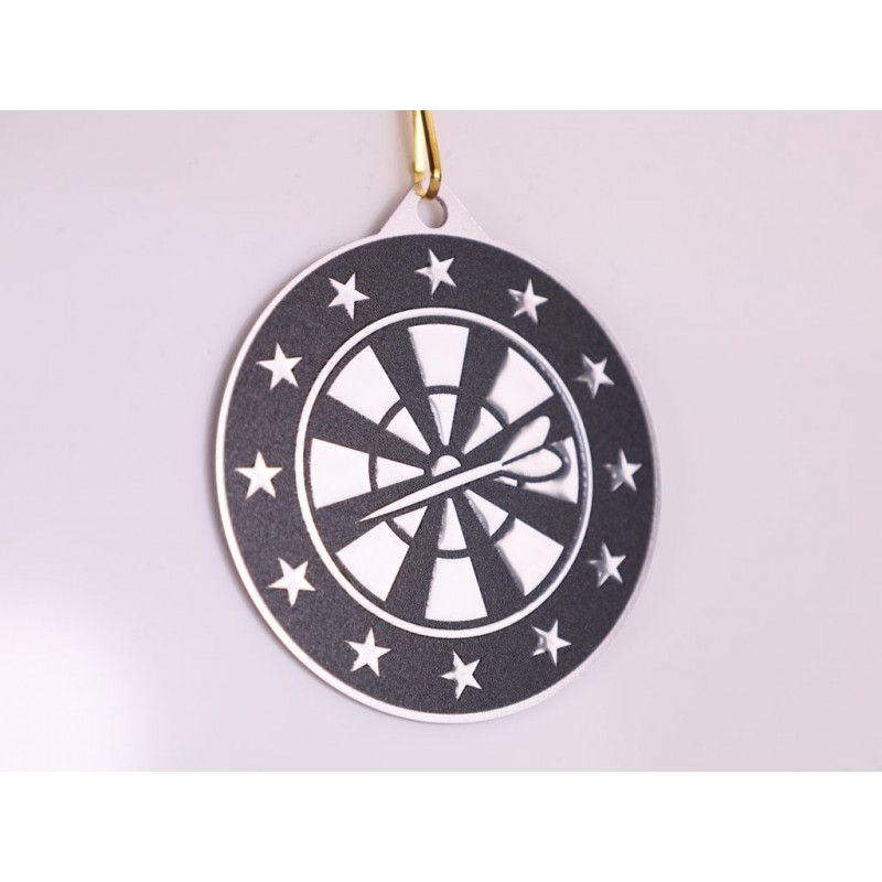 Medaile z kvalitního kovu s lesklým povrchem a tištěným sportovním motivem. Dostupná ve zlaté, stříbrné a bronzové barvě. Průměr 6 cm, tloušťka 0,15mm.