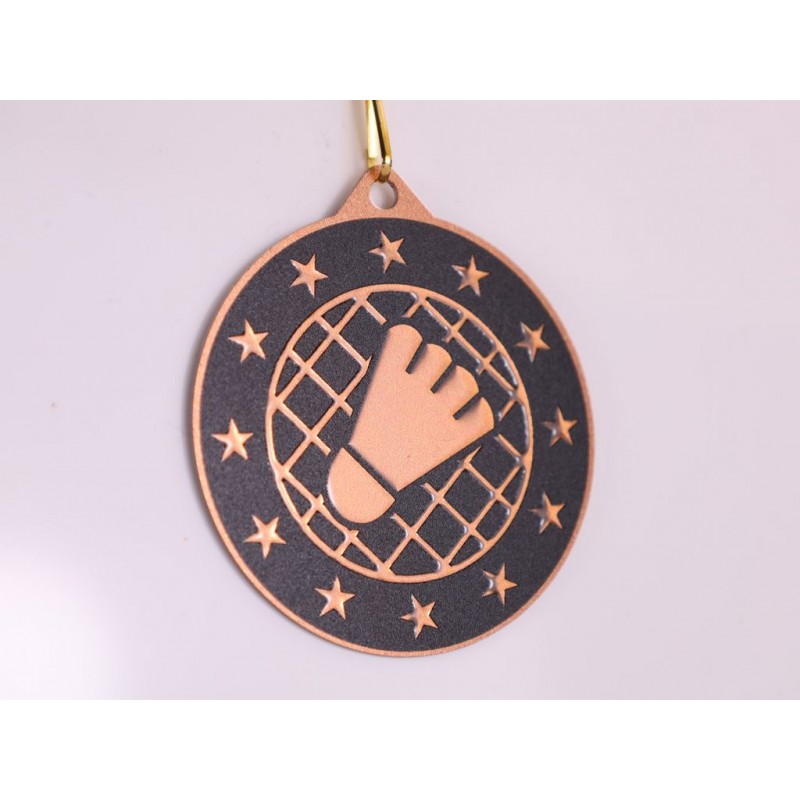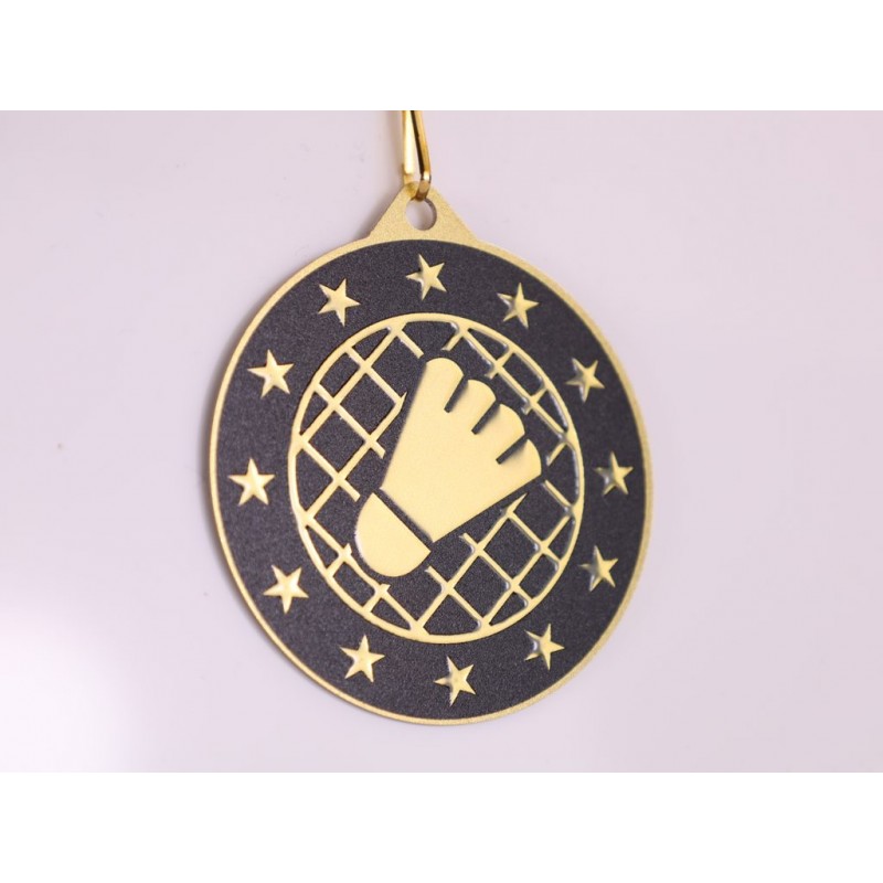 Medaile z kvalitního kovu s lesklým povrchem a tištěným sportovním motivem. Dostupná ve zlaté, stříbrné a bronzové barvě. Průměr 6 cm, tloušťka 0,15mm.