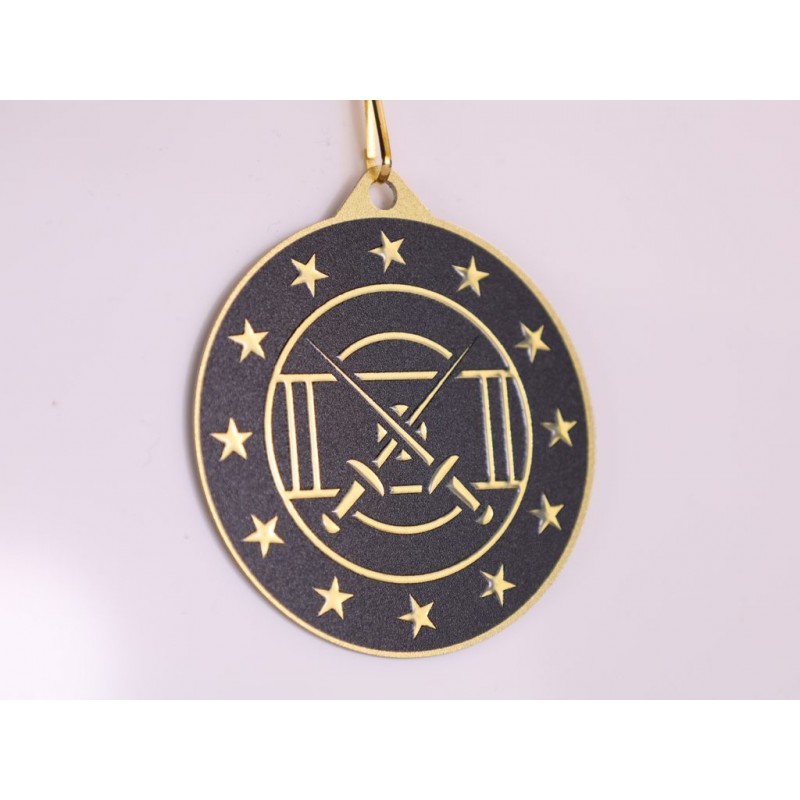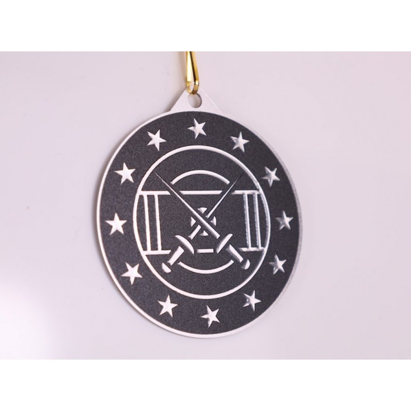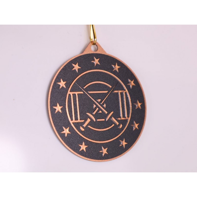 Medaile z kvalitního kovu s lesklým povrchem a tištěným sportovním motivem. Dostupná ve zlaté, stříbrné a bronzové barvě. Průměr 6 cm, tloušťka 0,15mm.