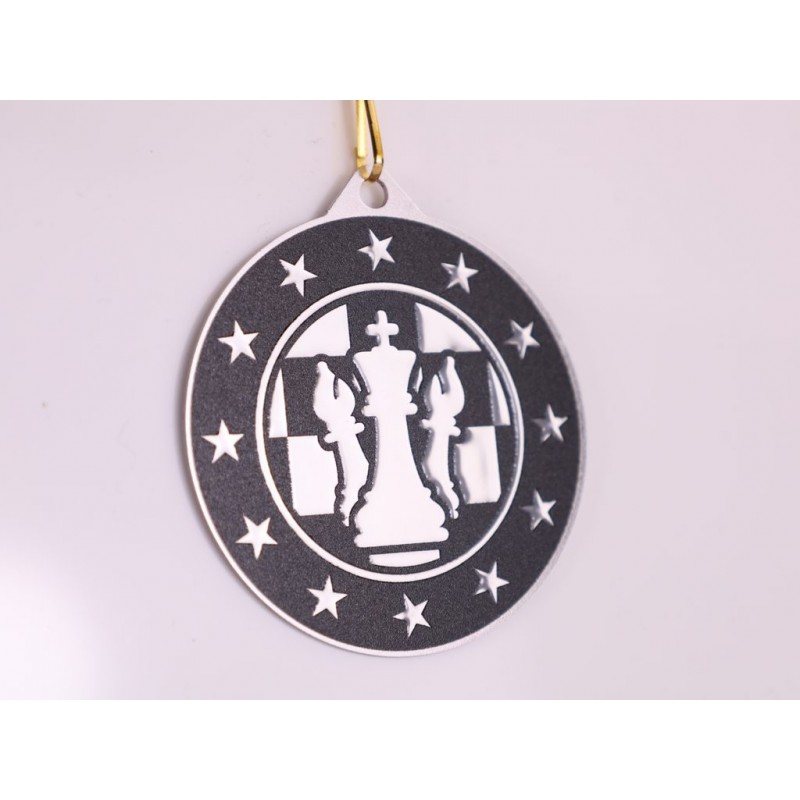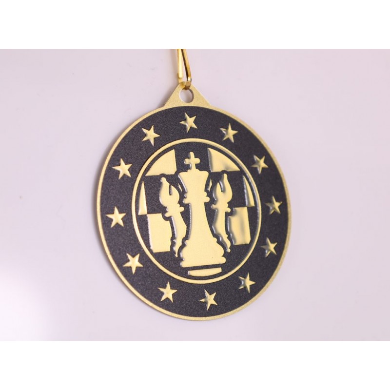 Medaile z kvalitního kovu s lesklým povrchem a tištěným sportovním motivem. Dostupná ve zlaté, stříbrné a bronzové barvě. Průměr 6 cm, tloušťka 0,15mm.