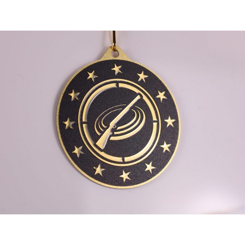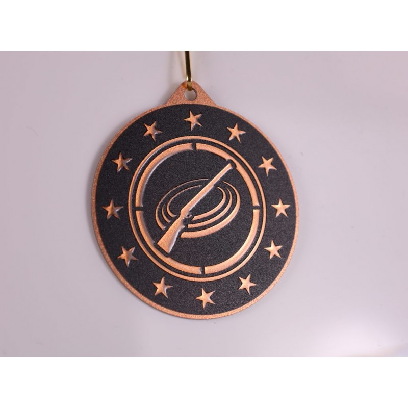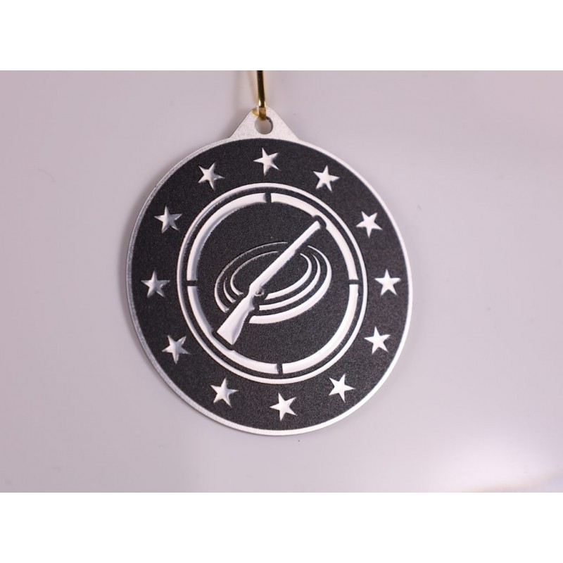 Medaile z kvalitního kovu s lesklým povrchem a tištěným sportovním motivem. Dostupná ve zlaté, stříbrné a bronzové barvě. Průměr 6 cm, tloušťka 0,15mm.