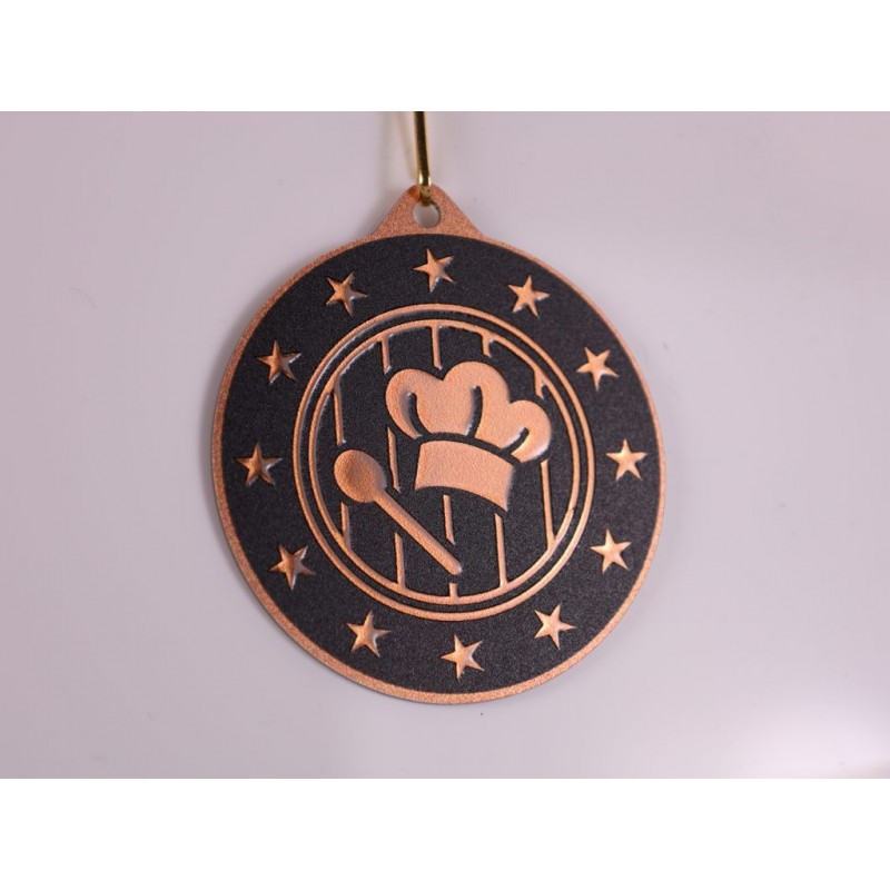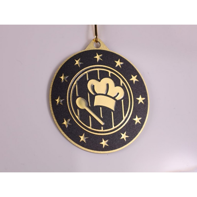 Medaile z kvalitního kovu s lesklým povrchem a tištěným sportovním motivem. Dostupná ve zlaté, stříbrné a bronzové barvě. Průměr 6 cm, tloušťka 1,5mm.