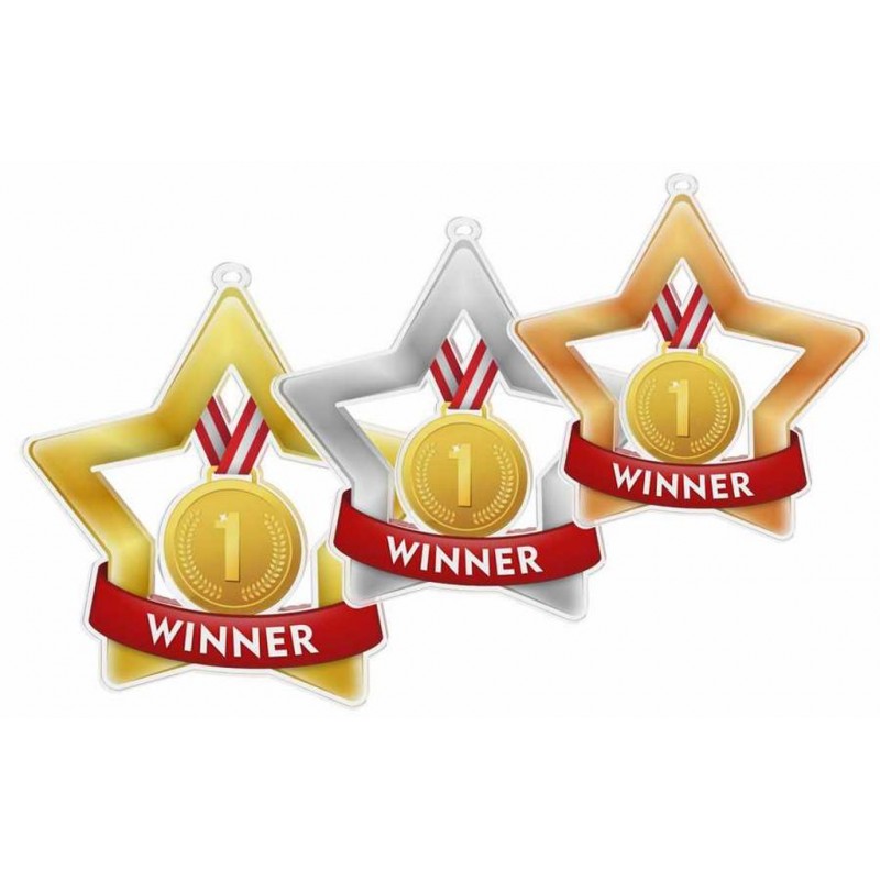 Akrylátová medaile dostupná ve třech průměrech 8cm, 7cm a 6cm, vhodná pro různé sportovní soutěže a turnaje. Stuha je součástí ceny medaile.