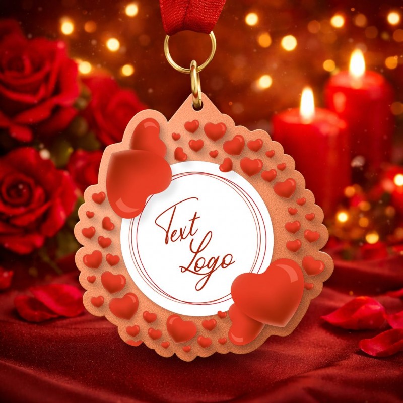 Kovová Valentýnská medaile o tloušťce 0,15 mm s možností vložení vlastního textu i loga na přední i zadní stranu. Medaile se vyrábí ve 3 velikostech – 5, 6 a 7 cm. Stuha je ke každé medaili zdarma.