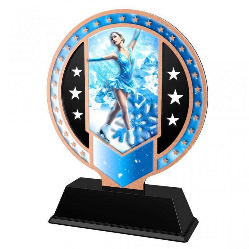 Elegantní kovová trofej kombinovaná s černým akrylátem. V ceně trofeje není zahrnuta cena štítku. Tloušťka trofeje je 0,4 cm. Podstavec je černý.