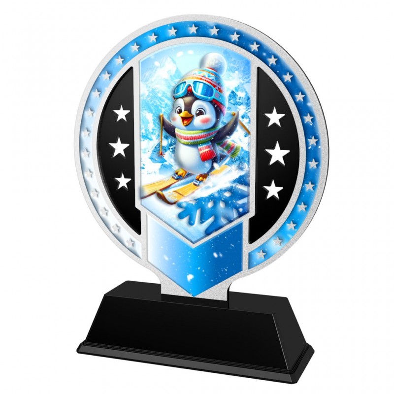 Elegantní kovová trofej kombinovaná s černým akrylátem. V ceně trofeje není zahrnuta cena štítku. Tloušťka trofeje je 0,4 cm. Podstavec je černý.
