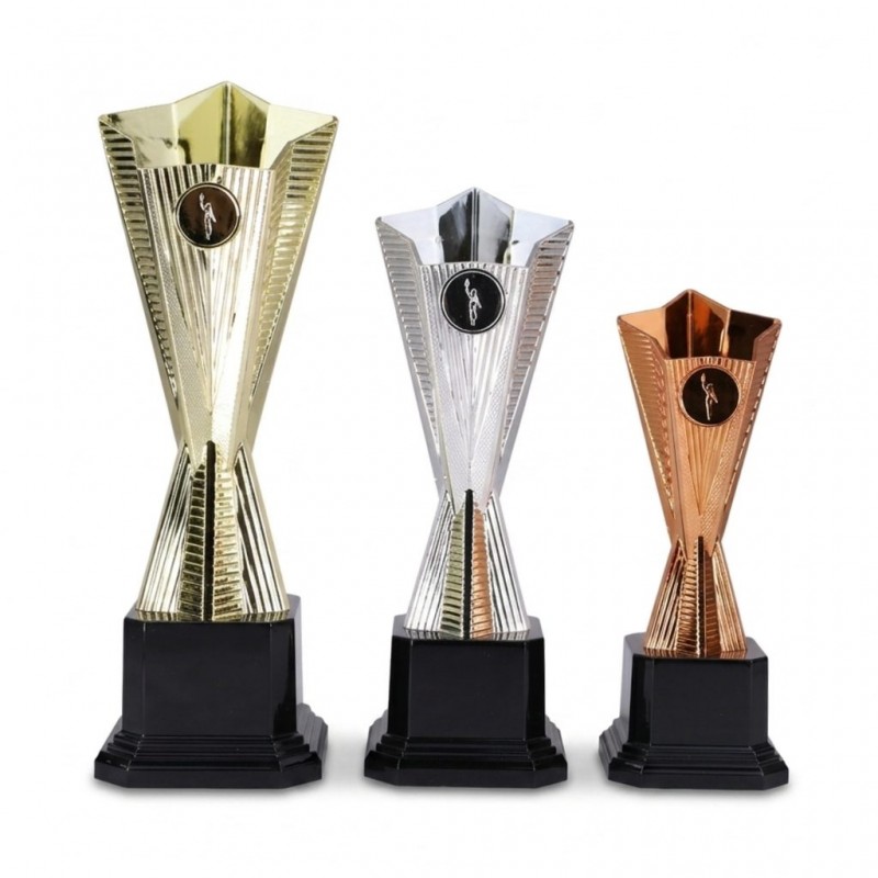 Na pohár lze umístit emblém. V ceně poháru není zahrnuta cena štítku. Zlatý pohár 31cm, stříbrný pohár 26cm, bronzový pohár 21,5cm.