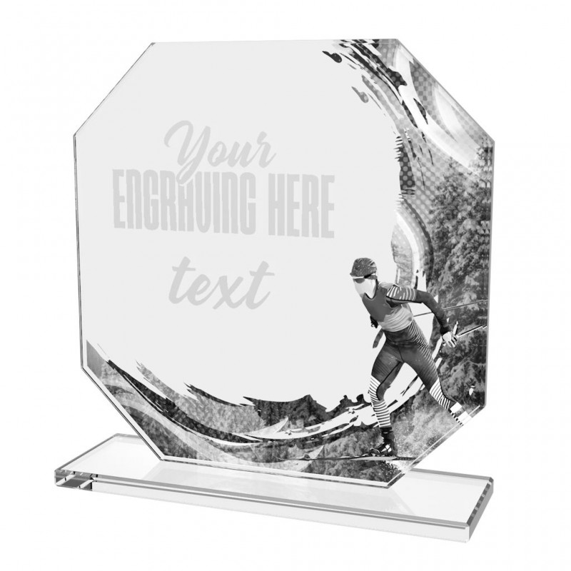 Skleněná trofej s motivem v ceně. Možnost UV HQ tisku.